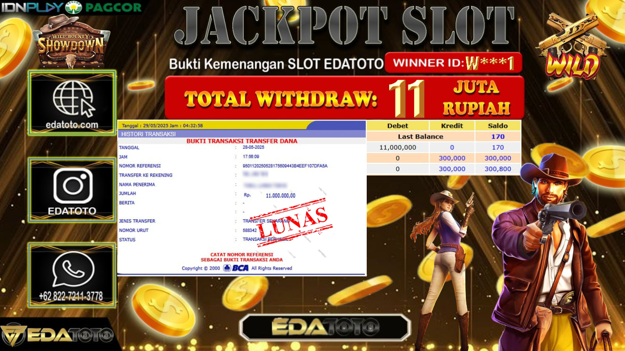 Selamat Kepada Pemilik user ID : W***1 Hari/Tanggal : Kamis/ 29, Mei 2025 Jackpot : Rp. 11.000.000 JT Permainan : Wild . . .