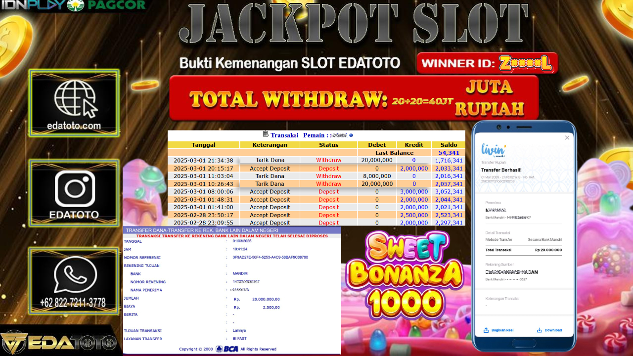 Selamat Kepada Pemilik user ID : xf****b1 Hari/Tanggal : Selasa / 11 , MARET 2025 Jackpot : Rp. 35.000.000 JT Permainan . . .
