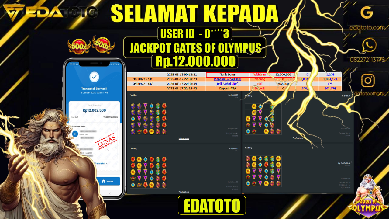 Selamat Kepada Pemilik user ID : NAR***TO Hari/Tanggal : SENIN / 20 , JANUARY 2025 Jackpot : Rp. 25.000.000 JT . . .