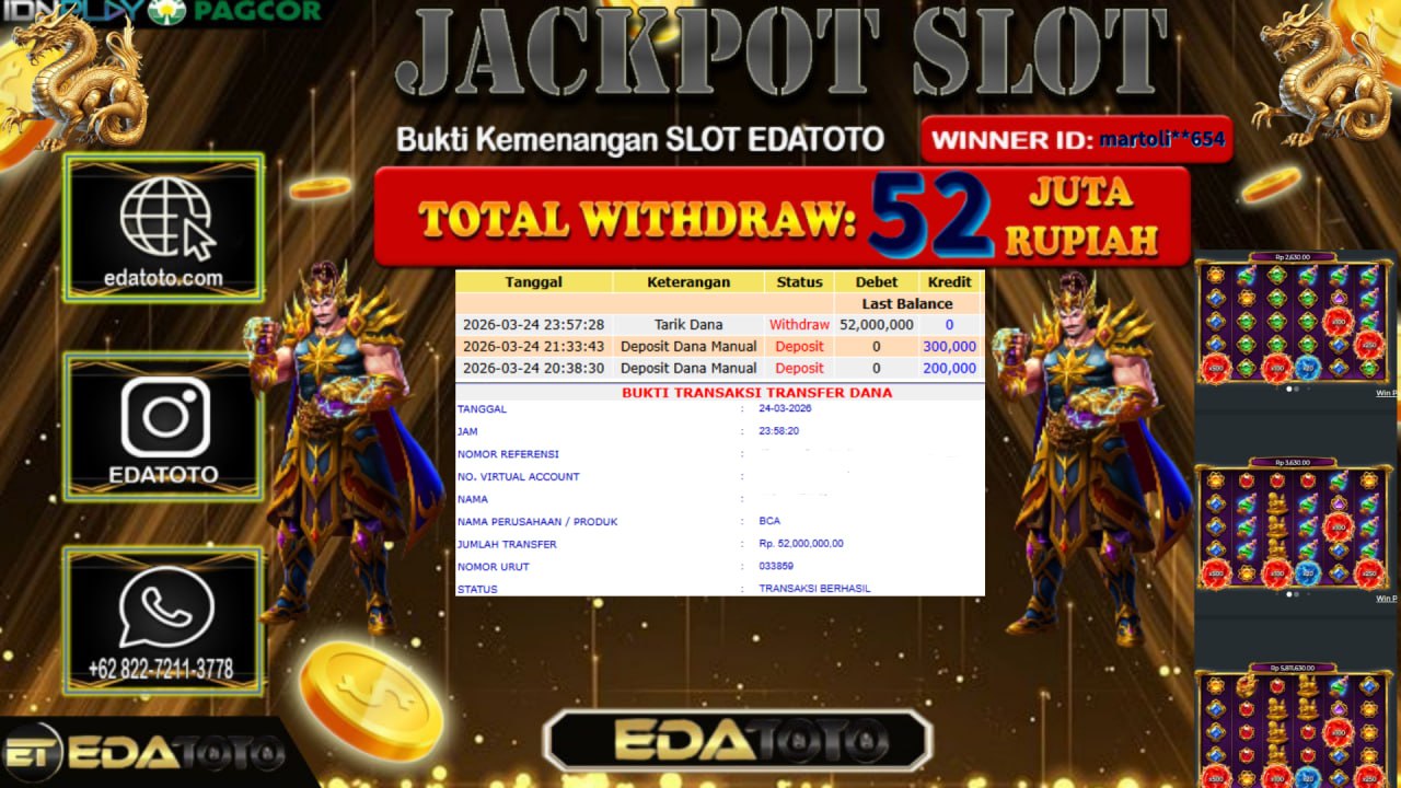 Selamat Kepada Pemilik user ID : martoli**654 Hari/Tanggal : Selasa / 24 MARET 2026 Jackpot : Rp, 40,000,000 JT Withdraw . . .